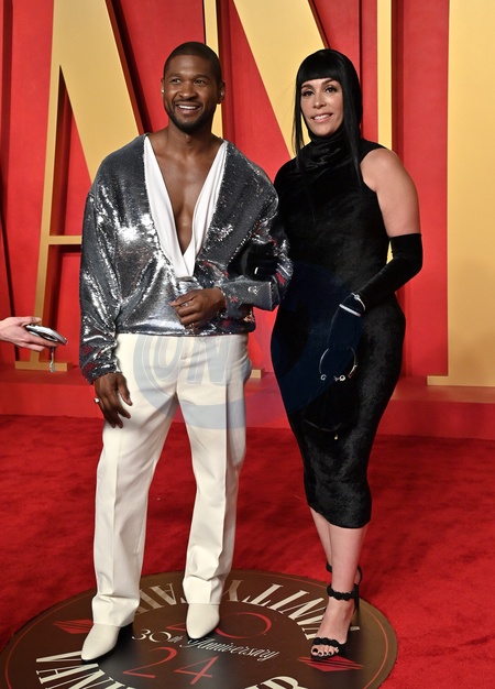 Usher and Jennifer Goicoechea arriving at the Vanity Fair Oscar Party held at the Wallis Annenberg Center for the Performing Arts on March 10, 2024 in Beverly Hills, CA.© OConnor-Arroyo / AFF-USA.com