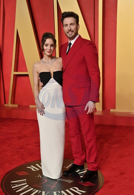 Chris Evans and Alba Baptista arriving at the Vanity Fair Oscar Party held at the Wallis Annenberg Center for the Performing Arts on March 10, 2024 in Beverly Hills, CA.© OConnor-Arroyo / AFF-USA.com