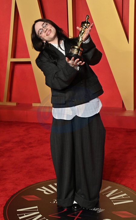 Billie Eilish arriving at the Vanity Fair Oscar Party held at the Wallis Annenberg Center for the Performing Arts on March 10, 2024 in Beverly Hills, CA.© OConnor-Arroyo / AFF-USA.com
