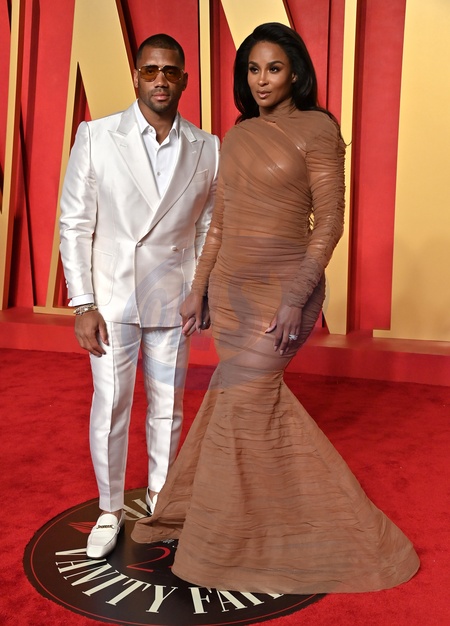Russell Wilson and Ciara arriving at the Vanity Fair Oscar Party held at the Wallis Annenberg Center for the Performing Arts on March 10, 2024 in Beverly Hills, CA.© OConnor-Arroyo / AFF-USA.com