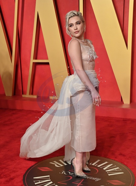Florence Pugh arriving to the Vanity Fair Oscar Party held at the Wallis Annenberg Center for the Performing Arts on March 10, 2024 in Beverly Hills, CA. OConnor-Arroyo / AFF-USA.com