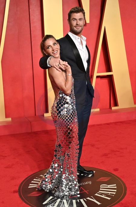 Elsa Pataky and Chris Hemsworth arriving to the Vanity Fair Oscar Party held at the Wallis Annenberg Center for the Performing Arts on March 10, 2024 in Beverly Hills, CA.© OConnor-Arroyo / AFF-USA.com