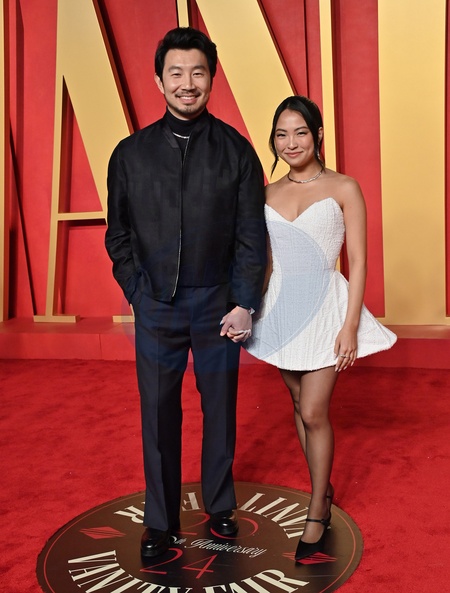 Simu Liu and Allison Hsu arriving to the Vanity Fair Oscar Party held at the Wallis Annenberg Center for the Performing Arts on March 10, 2024 in Beverly Hills, CA. OConnor-Arroyo / AFF-USA.com