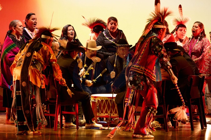 The Osage Tribal Singers and Dancers perform onstage during the live ABC telecast of the 96th Oscars® at the Dolby® Theatre at Ovation Hollywood on Sunday, March 10, 2024., Credit:Avalon.red / Avalon