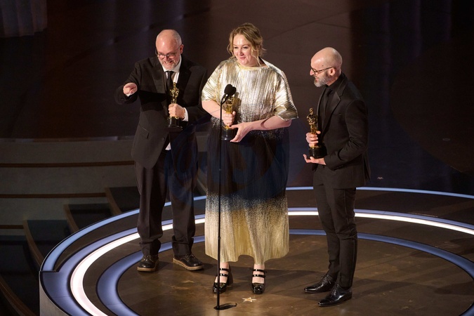 Mark Coulier, Nadia Stacey and Josh Weston accept the Oscar® for Makeup and Hairstyling during the live ABC telecast of the 96th Oscars® at the Dolby® Theatre at Ovation Hollywood on Sunday, March 10, 2024., Credit:Avalon.red / Avalon