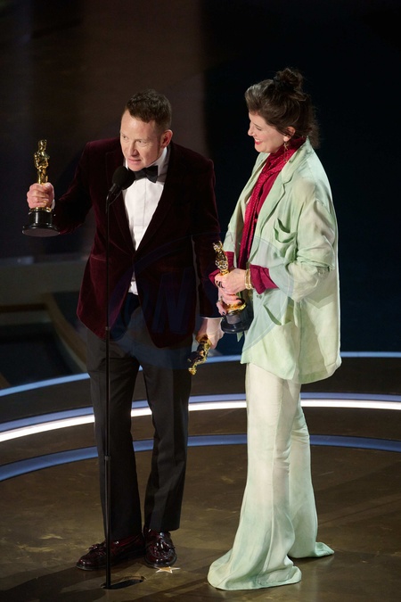 James Price and Shona Heath accept the Oscar® for Production Design during the live ABC telecast of the 96th Oscars® at the Dolby® Theatre at Ovation Hollywood on Sunday, March 10, 2024., Credit:Avalon.red / Avalon