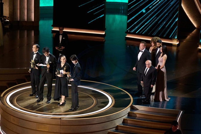 Masaki Takahashi, Takashi Yamazaki, Kiyoko Shibuya and Tatsuji Nojima accept the Oscar® for Visual Effects during the live ABC telecast of the 96th Oscars® at the Dolby® Theatre at Ovation Hollywood on Sunday, March 10, 2024., Credit:Avalon.red / Avalon