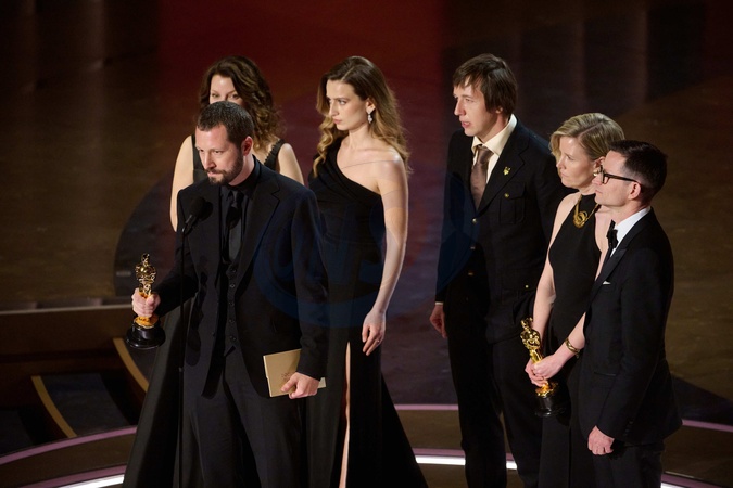 Raney Aronson-Rath, Mstyslav Chernov and Michelle Mizner accept the Oscar® for Documentary Feature Film during the live ABC telecast of the 96th Oscars® at the Dolby® Theatre at Ovation Hollywood on Sunday, March 10, 2024., Credit:Avalon.red / Avalon