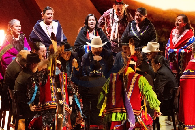 The Osage Tribal Singers and Dancers perform onstage during the live ABC telecast of the 96th Oscars® at the Dolby® Theatre at Ovation Hollywood on Sunday, March 10, 2024., Credit:Avalon.red / Avalon
