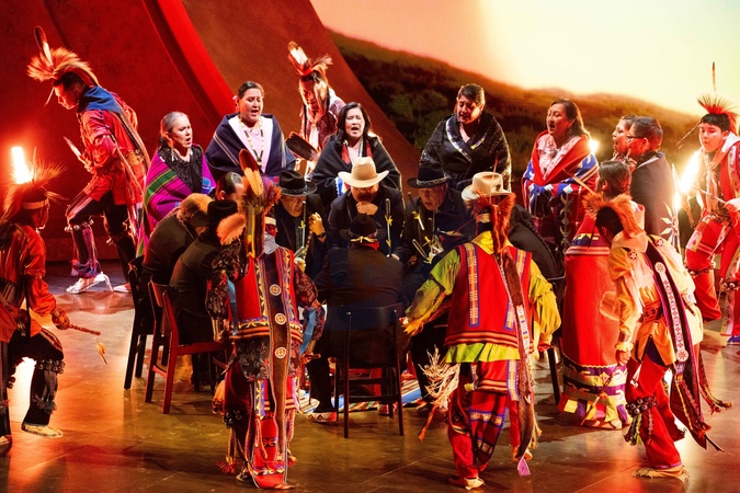 The Osage Tribal Singers and Dancers perform onstage during the live ABC telecast of the 96th Oscars® at the Dolby® Theatre at Ovation Hollywood on Sunday, March 10, 2024., Credit:Avalon.red / Avalon