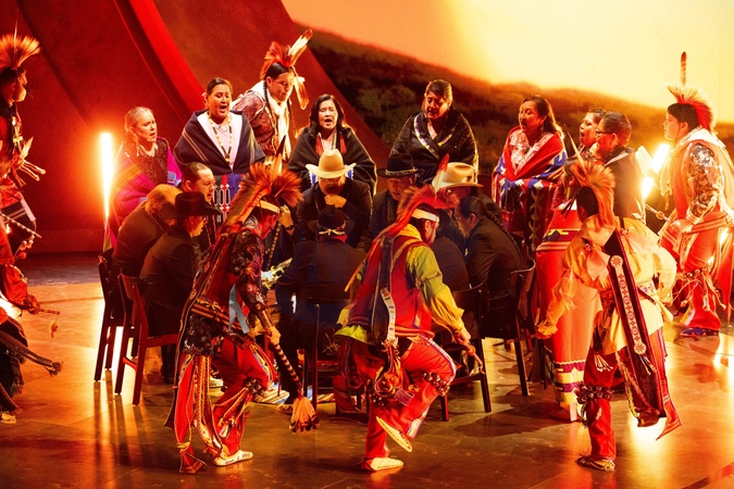 The Osage Tribal Singers and Dancers perform onstage during the live ABC telecast of the 96th Oscars® at the Dolby® Theatre at Ovation Hollywood on Sunday, March 10, 2024., Credit:Avalon.red / Avalon