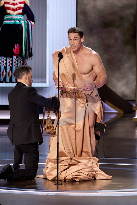 Jimmy Kimmel and John Cena present the Oscar® for Costume Design during the live ABC telecast of the 96th Oscars® at the Dolby® Theatre at Ovation Hollywood on Sunday, March 10, 2024., Credit:Avalon.red / Avalon