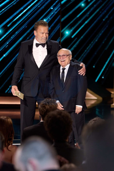 Arnold Schwarzenegger and Danny DeVito presents the Oscar® for Visual Effects during the live ABC telecast of the 96th Oscars® at the Dolby® Theatre at Ovation Hollywood on Sunday, March 10, 2024., Credit:Avalon.red / Avalon