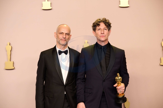 James Wilson and Jonathan Glazer pose backstage with the Oscar® for International Feature FIlm during the live ABC telecast of the 96th Oscars® at Dolby® Theatre at Ovation Hollywood on Sunday, March 10, 2024., Credit:Avalon.red / Avalon
