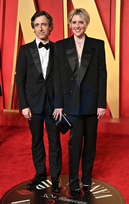 Noah Baumbach and Greta Gerwig arriving to the Vanity Fair Oscar Party held at the Wallis Annenberg Center for the Performing Arts on March 10, 2024 in Beverly Hills, CA. OConnor-Arroyo / AFF-USA.com