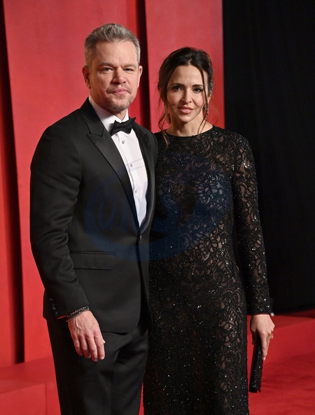 Matt Damon and Luciana Barroso arriving at the Vanity Fair Oscar Party held at the Wallis Annenberg Center for the Performing Arts on March 10, 2024 in Beverly Hills, CA.© OConnor-Arroyo / AFF-USA.com