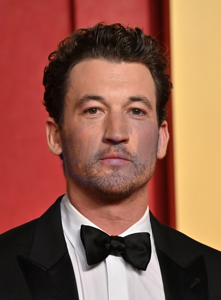 Miles Teller arriving at the Vanity Fair Oscar Party held at the Wallis Annenberg Center for the Performing Arts on March 10, 2024 in Beverly Hills, CA.© OConnor-Arroyo / AFF-USA.com