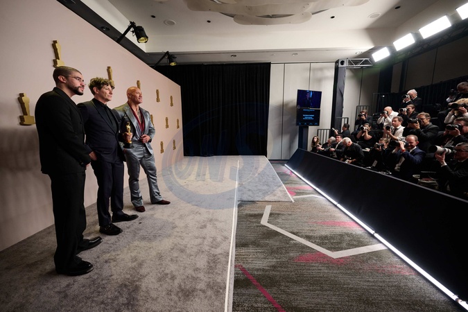Bad Bunny, Jonathan Glazer, and Dwayne Johnson pose backstage with the Oscar® for International Feature FIlm during the live ABC telecast of the 96th Oscars® at Dolby® Theatre at Ovation Hollywood on Sunday, March 10, 2024., Credit:Avalon.red / Avalon