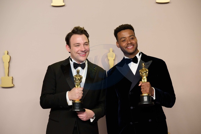 Ben Proudfoot and Kris Bowers pose backstage with the Oscar® for Documentary Short Film during the live ABC telecast of the 96th Oscars® at Dolby® Theatre at Ovation Hollywood on Sunday, March 10, 2024., Credit:Avalon.red / Avalon