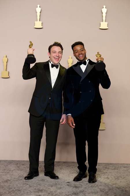 Ben Proudfoot and Kris Bowers pose backstage with the Oscar® for Documentary Short Film during the live ABC telecast of the 96th Oscars® at Dolby® Theatre at Ovation Hollywood on Sunday, March 10, 2024., Credit:Avalon.red / Avalon