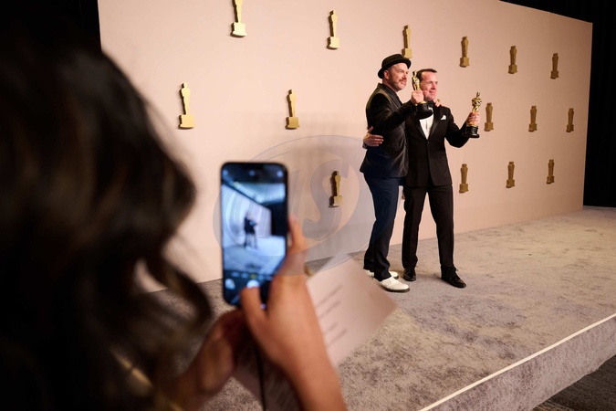 Tarn Willers and Johnnie Burn pose backstage with the Oscar® for Sound during the live ABC telecast of the 96th Oscars® at Dolby® Theatre at Ovation Hollywood on Sunday, March 10, 2024., Credit:Avalon.red / Avalon