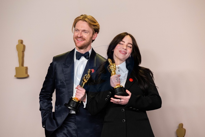 Finneas O'Connell and Billie Eilish pose backstage with the Oscar® for Original Song during the live ABC telecast of the 96th Oscars® at Dolby® Theatre at Ovation Hollywood on Sunday, March 10, 2024., Credit:Avalon.red / Avalon