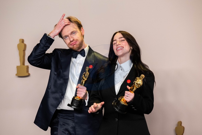 Finneas O'Connell and Billie Eilish pose backstage with the Oscar® for Original Song during the live ABC telecast of the 96th Oscars® at Dolby® Theatre at Ovation Hollywood on Sunday, March 10, 2024., Credit:Avalon.red / Avalon