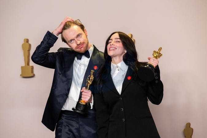 Finneas O'Connell and Billie Eilish pose backstage with the Oscar® for Original Song during the live ABC telecast of the 96th Oscars® at Dolby® Theatre at Ovation Hollywood on Sunday, March 10, 2024., Credit:Avalon.red / Avalon