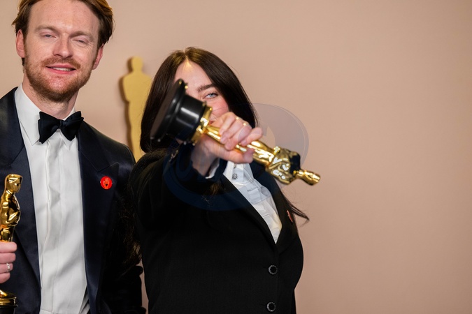 Finneas O'Connell and Billie Eilish pose backstage with the Oscar® for Original Song during the live ABC telecast of the 96th Oscars® at Dolby® Theatre at Ovation Hollywood on Sunday, March 10, 2024., Credit:Avalon.red / Avalon