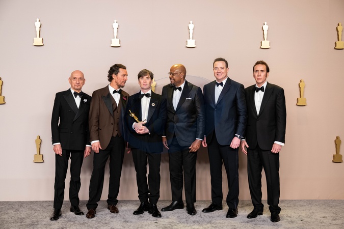 Cillian Murphy (3rd from L) poses backstage with the Oscar® for Actor in a Leading Role, Sir Ben Kingsley, Matthew McConaughey, Forest Whitaker, Brendan Fraser, and Nicolas Cage during the live ABC telecast of the 96th Oscars® at Dolby® Theatre at Ovation Hollywood on Sunday, March 10, 2024., Credit:Avalon.red / Avalon