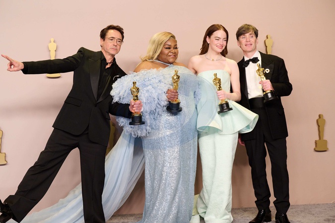 Robert Downey, Jr., Da'Vine Joy Randolph, Emma Stone, and Cillian Murphy pose backstage with the Oscar® for Actor/Actress in a Supporting Role and the Oscar® for Actor/Actress in a Leading Role during the live ABC telecast of the 96th Oscars® at Dolby® Theatre at Ovation Hollywood on Sunday, March 10, 2024., Credit:Avalon.red / Avalon