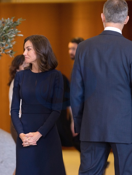 Le roi Felipe VI et la reine Letizia d’Espagne, lors de la commémoration de la Journée européenne du souvenir des victimes du terrorisme à la Galerie des Collections Royales de Madrid