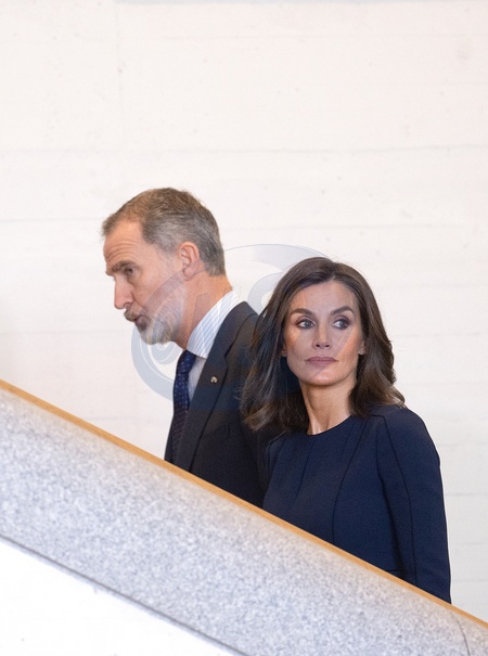 Le roi Felipe VI et la reine Letizia d’Espagne, lors de la commémoration de la Journée européenne du souvenir des victimes du terrorisme à la Galerie des Collections Royales de Madrid
