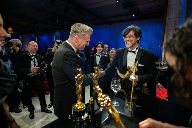 Oscar® winners Christopher Nolan and Masaki Takahashi get their Oscar® engraved at the Governors Ball following the live ABC telecast of the 96th Oscars® at the Dolby® Theatre at Ovation Hollywood in Los Angeles, CA, on Sunday, March 10, 2024., Credit:AL / Avalon