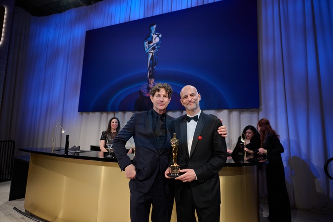 Oscar® winner Jonathan Glazer gets their Oscar® engraved with James Wilson at the Governors Ball following the live ABC telecast of the 96th Oscars® at the Dolby® Theatre at Ovation Hollywood in Los Angeles, CA, on Sunday, March 10, 2024., Credit:AL / Avalon