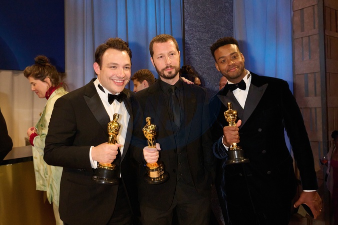 Oscar® winners Ben Proudfoot, Raney Aronson-Rath and Kris Bowers attend the Governors Ball following the live ABC telecast of the 96th Oscars® at the Dolby® Theatre at Ovation Hollywood in Los Angeles, CA, on Sunday, March 10, 2024., Credit:sb / Avalon