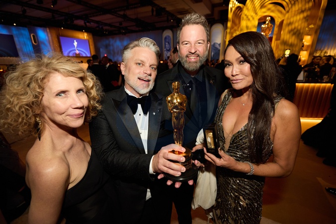 Oscar® winner Brad Booker, Academy Governor Paul Debevec, and Tia Carrere attend the Governors Ball following the live ABC telecast of the 96th Oscars® at the Dolby® Theatre at Ovation Hollywood in Los Angeles, CA, on Sunday, March 10, 2024., Credit:JKP / Avalon