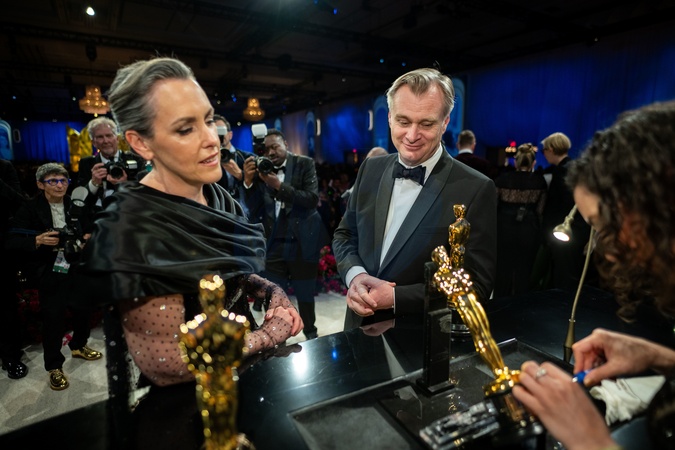 Oscar® winners Emma Thomas and Christopher Nolan gets his Oscar® engraved at the Governors Ball following the live ABC telecast of the 96th Oscars® at the Dolby® Theatre at Ovation Hollywood in Los Angeles, CA, on Sunday, March 10, 2024., Credit:AL / Avalon