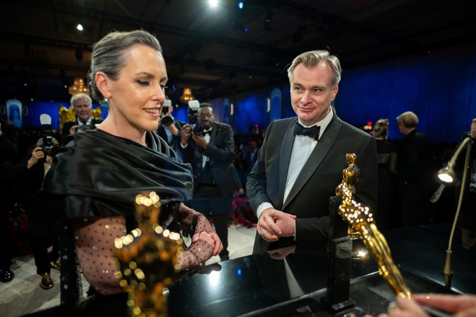 Oscar® winners Emma Thomas and Christopher Nolan gets his Oscar® engraved at the Governors Ball following the live ABC telecast of the 96th Oscars® at the Dolby® Theatre at Ovation Hollywood in Los Angeles, CA, on Sunday, March 10, 2024., Credit:AL / Avalon