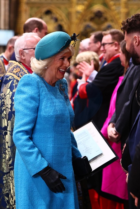 Britain's Queen Camilla speaks with guests as she attends an annual Commonwealth Day service ceremony at Westminster Abbey in London, on March 11, 2024 ., Credit:HENRY NICHOLLS / Avalon