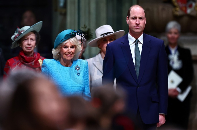 (From L) Britain's Princess Anne, Princess Royal, Britain's Queen Camilla and Britain's Prince William, Prince of Wales attend the annual Commonwealth Day service ceremony at Westminster Abbey in London, on March 11, 2024 ., Credit:HENRY NICHOLLS / Avalon