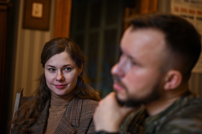 LVIV, UKRAINE - FEBRUARY 27, 2024 - Wife of the composer, pianist, music producer, serviceman of the 59th Separate Infantry Brigade named after Yakiv Handziuk of the Armed Forces of Ukraine, musician of the Cultural Landing Mykhailo Oliynyk, musicologist, researcher at the Solomiia Krushelnytska Music Memorial Museum, PR manager of the Mariia Zankovetska National Drama Theater Stefaniia Oliynyk is pictured during the interview to a correspondent of the Ukrinform Ukrainian National News Agency, Lviv, western Ukraine., Credit:Anastasiia Smolienko / Avalon
