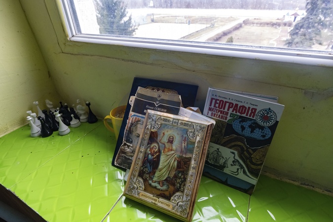 UKRAINE - MARCH 17, 2024 - Books and chess pieces are seen on the window sill in a leisure room of one of the barracks on the premises of the detention camp for Russian POWs, Ukraine., Credit:Pavlo_Bagmut / Avalon