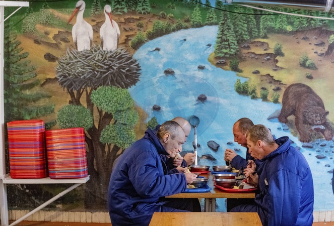 UKRAINE - MARCH 17, 2024 - Russian POWs have lunch in the dining room of the detention camp, Ukraine., Credit:Pavlo_Bagmut / Avalon
