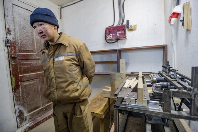 UKRAINE - MARCH 17, 2024 - A Russian POW makes beehive frames at a workshop on the premises of the detention camp, Ukraine., Credit:Pavlo_Bagmut / Avalon