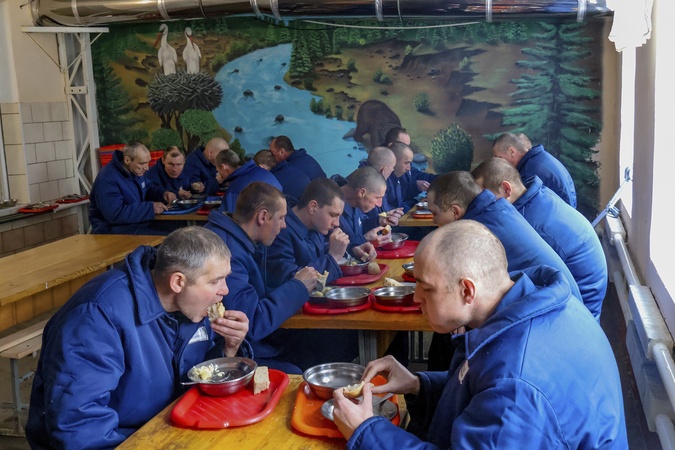 UKRAINE - MARCH 17, 2024 - Russian POWs have lunch in the dining room of the detention camp, Ukraine., Credit:Pavlo_Bagmut / Avalon