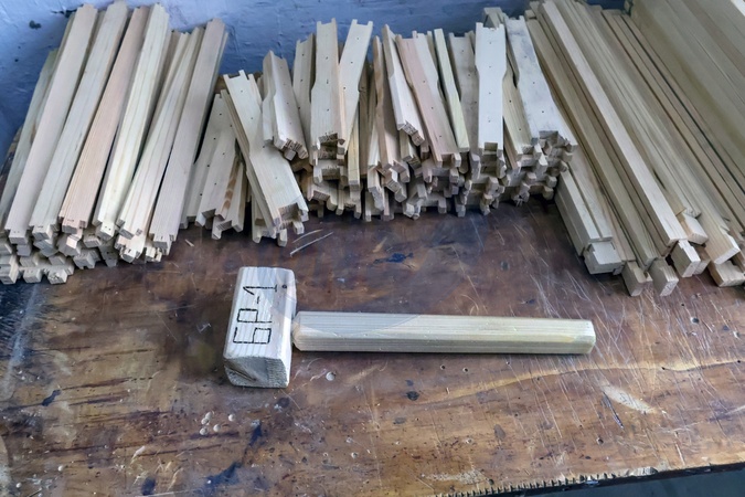 UKRAINE - MARCH 17, 2024 - Wooden bars for making beehive bars are seen at a workshop on the premises of the detention camp for Russian POWs, Ukraine., Credit:Pavlo_Bagmut / Avalon