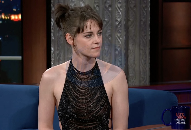 Pictures must credit: CBS Twilight actress Kristen Stewart used a TV chat show to tell trolls "f you” after her controversial magazine cover —posing in a jock strap. The openly gay star, 33, did the pose for US entertainment magazine Rolling Stone. Kristen, who has also played the late Princess Diana in royal movie Spencer, faced a lot of online hate for the photo which referenced her new movie, Love Lies Bleeding. She spoke out when she appeared on the Late Show with Stephen Colbert to promote the crime thriller in which she plays a gym receptionist who gets dragged into a criminal underworld. Picture supplied by JLPPA