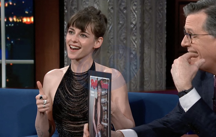Kristen Stewart sur le plateau de l'émission "The Late Show With Stephen Colbert" à New York
