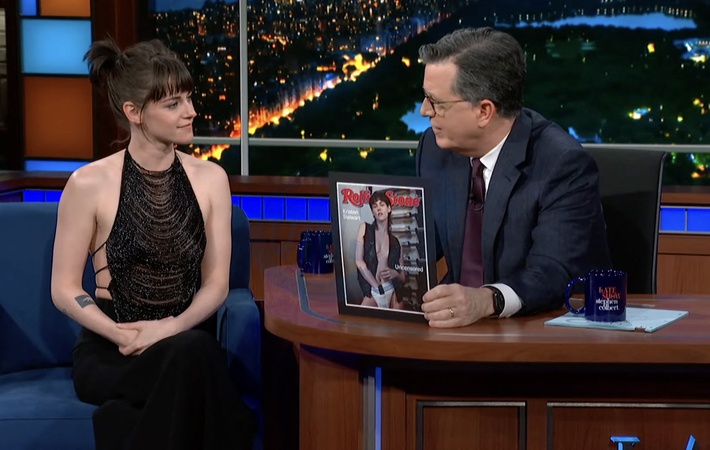 Kristen Stewart sur le plateau de l'émission "The Late Show With Stephen Colbert" à New York